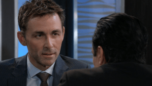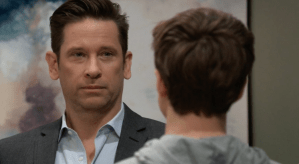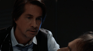 At The Metro Court, Sonny (Maurice Benard) told Michael (Chad Duell) how every time he turns around Jax (Ingo Rademachner) is there and it’s getting on his nerves. Speaking of Jax, he enters The Metro Court dining room. Jax asked Alexis (Nancy Grahan) to be his lawyer but refused to accept payment. Ava (Maura West) brought flowers as she visited Kiki’s (Hayley Erin) grave. She wasn’t surprised to see Franco (Roger Howarth). They talked about she pleading not guilty by reason of temporary insanity and his visit to Ryan (Jon Lindstrom). Franco said although he wanted to see Chamberlain pay for killing Kiki, he didn’t want it to happen until Ryan helped Jordan (Briana Henry). He urged Ava to let go of her need for wanting to kill Ryan. But she said she couldn’t do that. Curtis (Donnell Turner) suggested they forge Ryan’s  signature on the consent form. Finn (Michael Easton) added they may need to make sure Chamberlain didn’t make it off the table. Kevin (also Lindstrom) came to his brother’s hospital room. He told his brother he realized Ryan was too much of a narcissist to be saved and if there was any justice, Ryan would burn in Hell. Valerie visited Jordan. Elizabeth questioned the fairness of a good person like Jordan dying and Ryan getting to live. At Crimson before Sasha (Sofia Mattsson) left to meet Michael for their date, Nina (Michelle Stafford) told her how much she enjoyed working for Jax. Valentin (Jame Patrick Stuart) was at the door and overheard the conversation and later came downstairs to The Metro Court dining room and sat at the bar with Sonny to discuss Jasper Jax. Dr. Neil Byrnes commented how Jax and Alexis were the most civil divorced couple he ever met. At GH, Ava and Ryan officially “broke up”. Nina told Valentin she wanted to postpone their wedding until September as she was working to up Crimson’s circulation and would be busy with work. While he slept, someone came into Ryan’s room and with gloved hands injected something into his IV.