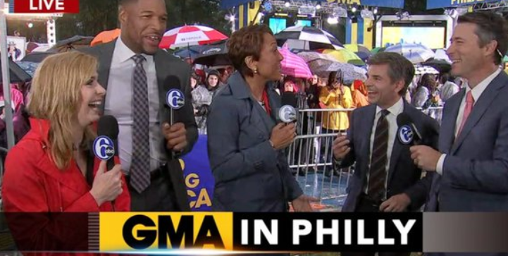 GMA didn’t let a little thing like rain keep them from broadcasting a great popup show from Eakins Oval in Philadelphia. Robin Roberts, Michael Strahan, Lara Spencer and George Stephanopoulos were on hand and welcomed by the City of Brotherly Love. A highlight of GMA in Philly included a performance by the legendary Patti Labelle!