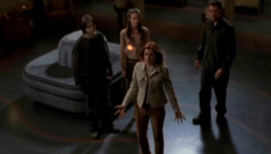 Anyway, the best thing about this episode for me was Connor finally getting to meet his mother. Although it wasn’t really Darla, Connor got to release his pain and hurt by talking with his mother. And viewers got the pleasure of seeing Julie Benz on Angel one final time. Her scenes with Vincent Kartheiser’s Connor were emotional and heartwarming and reminded viewers how much Connor longed for his mother. He continued to make bad choices out of anger and abandonment. Not only was he a vessel to bring forth a superior being, but he was also a vessel to bring forth Holtz’s revenge against Angelus.