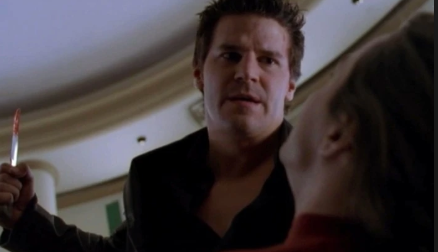 Anyway, the best thing about this episode for me was Connor finally getting to meet his mother. Although it wasn’t really Darla, Connor got to release his pain and hurt by talking with his mother. And viewers got the pleasure of seeing Julie Benz on Angel one final time. Her scenes with Vincent Kartheiser’s Connor were emotional and heartwarming and reminded viewers how much Connor longed for his mother. He continued to make bad choices out of anger and abandonment. Not only was he a vessel to bring forth a superior being, but he was also a vessel to bring forth Holtz’s revenge against Angelus.