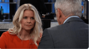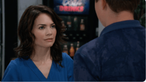 Laura (Genie Francis) thanked Kevin (Jon Lindstrom) for the bouquet of tulips he sent even though he couldn’t sign the card because of the plan. Speaking of the plan, Kevin had to hang up because it was show time at The Metro Court when Ava (Maura West) arrived. Lucy (Lynn Herring) and Scott (Kin Shriner) were discussing The Nurse’s Ball. Spotting Ava and Kevin together, Lucy came over to their table. With Scott standing next to her, Lucy suggested Ava go to the ball with Baldwin, but Kevin said Ava were going with him. Robert (Tristan Rogers) ran into Laura outside of Kelly’s and asked her to go to The Nurse’s Ball with him. Laura declined and Robert reasoned she wasn’t ready to move on from Kevin. Scott pulled Ava aside and asked what she was up to with Kevin. Curtis (Donnell Turner) asked Jordan (Briana Henry) whether she was keeping anything from him about her medical condition. Anna (Finola Hughes) told Finn (Michael Easton) she was ready to move on with her life. Finn thought about when he practiced proposing to her with the skeleton. Maxie (Kristen Storms) told Lulu (Emme Rylan) about her (Maxie) non-date with Peter (Wes Ramsey). Anna ran into her son. Peter told her being Faison (Anders Hove) was making him pulled back from Maxie. He talked about how Faison raised him and his fear of hurting Maxie. Anna assured he wasn’t giving Maxie enough credit. Finn told Curtis and Jordan her kidney was failing and she needed a donor immediately. But he was optimistic someone in Port Charles could be a match. Willow (Katelyn MacMullen) told Kristina (Lexi Ainsworth) how she escaped from Dawn of Day and the story of meeting Shiloh (Coby Ryan McLaughlin) when she was eighteen. She and her mother lived at different communes until they discovered DOD. Her mother was good at outreach and soon became Shiloh’s right hand. Her mother joined The Trust. Then, Shiloh wanted her. She recorded her pledge and was initiated. Willow showed Kristina her DOD tattoo, explained about being drugged and had later had sex with Shiloh. After Willow left, Dr. Burns told Kristina she reached a crossroad in her treatment and had to make a decision based on the information she was given. Kevin received a text from Dr. Finn asking him to meet in Jordan’s hospital room. Finn entered and announced Kevin had the genetic to be Jordan’s kidney donor. Robert said Anna had to consider Peter may be Alex’s (also Hughes) son. Maxie met Peter at The Metro Court and whisked her off for their date. Dr. Neil Burns left the door to the safe house opened and told Kristina it was her decision to return to Shiloh or stay with her family.