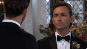 Nina (Cynthia Watros) told Charlotte (Scarlett Fernandez) she couldn’t come to the party because it was for grownups. Charlotte was wearing the half of Nina’s heart necklace and asked an entering Sasha (Sofia Mattsson) whether she had the other half of the necklace. Nina explained that she thought her mother gave it to her daughter before she (Nina) found out about Sasha. Lulu (Emme Rylan) was surprised that Laura (Genie Francis) and Kevin (Jon Lindstrom) were watching Charlotte at Wyndemere and not her (Lulu) house. At Crimson, Peter (Wes Ramsey) told Maxie (Kristen Storms) the challenge of throwing a bachelor party for someone who has no friends. Believing his lie about why he happened to be on Pier 55 in time to drive Dev and Wiley to GH, Maxie told Peter she didn’t think the waterfront district was the best place for his new apartment. She suggested they look for apartments together. Finn (Michael Easton), Curtis (Donnell Turner) and Michael (Chad Duell) were at The Floating Rib. Finn commented he was only there because of Peter ‘his future stepson in law.’ Michael told Amy Driscoll’s brother Chet they weren’t there for karaoke night but “to celebrate the marriage of a guy we all hate to a woman we feel deserves better.” Chase (Josh Swickward) told Willow (Katelyn MacMullen) he had a surprise for her. Seeing a painting of Helena (Constance Towers), Charlotte told Kevin and Laura the woman reminded her of a Disney evil queen. Kevin commented how an astute Charlotte could see deceit behind smiles. Nina’s bachelorette party included a spa day at The Metro Court. But unfortunately for the bride-to-be, the sauna was already occupied by Chase and Willow. Nina took the opportunity to taunt Willow by seeing how much Charlotte liked her new teacher. Since a storm prevented the men from getting to their bachelor party location and The Metro Court was double booked, the men and women all ended up at The Floating Rib. Sasha continued to feel guilty for keeping the truth about her identity a secret from Nina. Michael attempted to make her feel better by giving Sasha the news about his new baby sister Donna Corinthos.  For karaoke Nina and because she asked, Valentin sang a romantic song about how much he loved Nina. In the bathroom at The Floating Rib, Liesl (Kathleen Gati) ordered an upset Sasha to pull herself together reminding how she (Liesl) was only keeping her secret that Sasha wasn’t Nina’s daughter so Nina wouldn’t be hurt. The women were unaware that Lulu was in a stall and heard the whole thing.