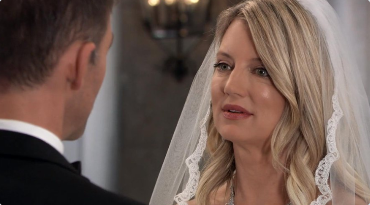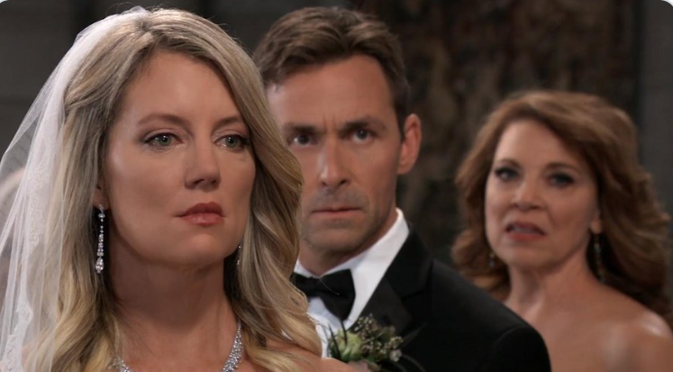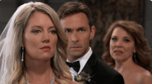 Lulu (Emme Rylan) watched as bride Nina (Cynthia Watros) arrived at the church. At GH, Dev (Ashton Arhab) told Sam (Kelly Monaco) and Jason (Steve Burton) that Mr. August (Wes Ramsey) was carrying a gym bag, looked nervous and wasn’t dressed like he was going to the gym; he looked like he was late for a meeting. Sam and Jason realized Peter had to be working with Shiloh (Coby Ryan McLaughlin). Sonny (Maurice Bernard) told Carly (Laura Wright) she needed to rest. Carly was grateful Donna’s condition was correctible. Josslyn (Eden McCoy) told Jax (Ingo Rademacher) the whole story about how Dev saved Sonny’s life in Turkey. When Dev’s life was in danger, he escaped from Turkey and made his way to the U.S., Josslyn discovered him in Lulu’s house and called the police. Sonny straightened everything out and told her how Dev had to stay with them. But her mom (Carly) asked whether she (Josslyn) was okay with it. Jax reminded Josslyn as her father, he had to look out for her. Lulu was desperate to talk with Nina in private, but Nina said it could wait until the reception or after the honeymoon. Maxie (Kristen Storms) pulled Lulu aside, reminding her how happy Nina was. Seeing how excited and hopeful Charlotte (Scarlett Fernandez) was, Lulu decided to remain silent. Carly asked Bobbie (Jackie Zeman) to check on Donna. Later, Carly confessed her worry she wasn’t enough to help Donna get through her challenges. Bobbie assured Carly she’s the perfect mother for Donna. Sam and Jason arrived at Spinelli’s hotel room at The Metro Court. The Jackal’s contact was able to trace the call Peter made at Crimson to a burner phone. They also learned Peter withdrew $35,000. After Nina and Valentin’s touching vows, Lulu stood up when the minister said if anyone could show just cause why Nina and Valentin shouldn’t be married. Bobbie gave Carly a special gift for Donna, BJ’s music box. Josslyn told Dev she told her dad the truth about him (Dev) and didn’t know what Jax would do next. Jax confronted Sonny and vowed to protect Carly and Josslyn. Spinelli looked for proof of Peter’s guilt as Shiloh’s accomplice. The minister took Charlotte to the playroom downstairs. Lulu blurted out that Sasha (Sofia Mattsson) wasn’t really Nina’s daughter. Nina asked Sasha to settle the dispute by telling everyone she (Sasha) was her daughter.