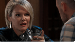 Alexis (Nancy Grahan) came to the Corinthos house and gave Sonny (Maurice Benard) a Corinthos Coffee trinket as a gift for Donna. She received a text from Julian (William deVry) about her client. At Charlie’s, Brad (Parry Shen) gave Julian a Welcome Mat as a staying in town gift. But when Cooper reminded Jerome what Sonny would do once he found out his involvement in the kidnapping of his grandson, Julian grabbed Brad by the throat and reminded he didn’t like being threatened. Ava (Maura West) witnessed the altercation. Julian said everything was okay Brad left. Sasha (Sofia Mattsson) was packing her things from her desk at Crimson. Josslyn (Eden McCoy) assured Dev (Ashton Arhab) her dad wouldn’t hurt him because it would hurt her. She said she’d fix it then sent Jax (Ingo Rademacher) a text. With Jax in tow, Nina (Cynthia Watros) returned to Wyndemere and told Valentin she was there for a few of her things she wanted to pick up and then she’d be out of his hair. Nina told Valentin he never longer had any say in her life. Before leaving Wyndemere, Ms. Reeves tearfully asked whether was lying when he said her mother told him her daughter was alive. Lucy (Lynn Herring) arrived at Crimson and still tried to convince Sasha to be the new Face of Deception. Sasha told Lucy she lied about being Nina’s daughter. Lucy thought Sasha’s deception would be a gold but Ms. Gilmore didn’t want Nina to have any more negative press because of her. When Nina arrived at Crimson, Sasha lied and said neither Liesl (Kathleen Gati) and Valentin (James Patrick Stuart) were involved. She said she was contacted by the lawyer who arranged her adoption. The man needed money because he was dying and knew because she had no family, no one would come after her. Sasha said she agreed because she needed money too, adding that she had a friend help her fake the DNA tests. Nina didn’t believe the story, telling Sasha she was good then demanded she leave. After they were gone, Michael asked Sasha why she lied. Ms. Gilmore explained she didn’t want Nina to lose Liesl, Charlotte (Scarlett Fernandez) or Valentin. Julian told Alexis how her client (Olivia) was distributing damaging flyers in order to sabotage his business at Charlie’s. Brad had a therapy session with Neil (Jon Flanigan), asking Dr. Byrnes to prescribe something for his anxiety explaining he hasn’t been able to sleep since his son was kidnapped. After having a conversation with Sonny, Jax came on the patio of the Corinthos house and assured Dev if the truth came out about the teen’s true identity it wouldn’t be from him. From the look Jax shoots Sonny, it’s obvious the men reached some sort of deal. Realizing not only could Nina never forgive them but could possibly press fraud charges against them, Liesl (Kathleen Gati) told Valentin to “get going while the going was good.” She intended to run away to Switzerland. Valentin thought the same thing and planned to escape with Charlotte to Greece. Ava showed up at Crimson. But instead of gloating about Nina’s situation, she brought a bottle and said she understood what Nina was going through.
