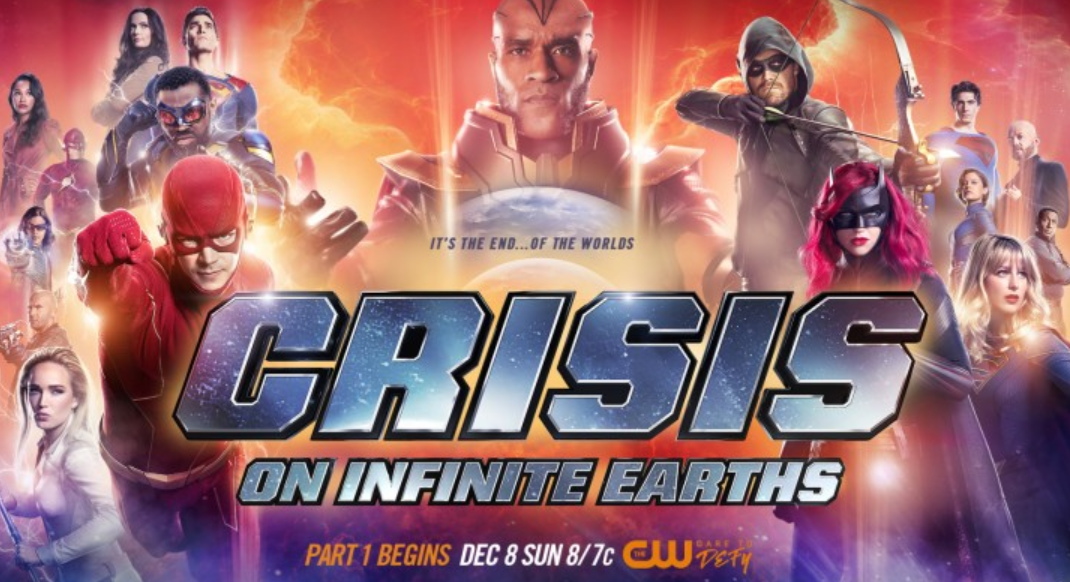 Season 5 Episode 9  is titled “Crisis on Infinite Earths Part One” Here is the synopsis from TV Guide: “The Monitor sends Harbinger to gather the worlds’ greatest heroes – Supergirl, The Flash, Green Arrow, Batwoman, White Canary, The Atom and Superman – in preparation for the impending Crisis. With their worlds in imminent danger, the superheroes suit up for battle.”