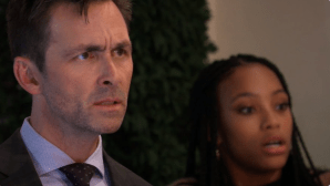 The auction was underway at the Jerome Gallery. Ava (Maura West) asked Trina (Sydney Mikayla) how they were doing with the guest list. Trina told Ava practically everyone invited RSVP. At GH, Andre (Anthony Maddox) again thanked Peter (Wes Ramsey) for saving his life. He commented how that was the second time someone tried to stop Franco’s (Roger Howath) procedure. At The Metro Court, Charlotte (Scarlett Fernandez) asked Lulu (Emme Rylan) whether her mother and Dustin (Mark Lawson) were having a sleepover like her papa and Nina did when they were dating. Laura (Genie Francis) and Curtis (Donnell Turner) arrived for the auction as did Nina (Cynthia Watros) and Valentin (James Patrick Stuart). Jax (Ingo Radmacher) berated Nikolas (Marcus Coloma) for being at the gallery storeroom when the auction was able to begin. Nikolas explained he was live streaming the auction and wanted Jax to deal with Valentin and not his mother (Laura). Laura questioned Valentin about Charlotte’s secret bodyguard. Valentin assured Laura he didn’t hire a bodyguard for Charlotte; he would have told Lulu so she didn’t think some strange person was stalking their daughter. And Valentin insisted there’s no way Charlotte would have an imaginary friend. At Kelly’s, Willow (Katelyn MacMullen) about her talk with Harmony. Finn (Michael Easton) and Violet entered and Willow left. Ms. Tait ran into Maxie (Kristen Storms) outside the diner. Maxie talked about de-cluttering her apartment now that Peter has moved in and has been packing up Georgie and James’ old baby clothes. Chase (Josh Swikward) told Finn how Willow thought she was pregnant. Peter asked Anna (Finola Hughes) why she was giving him the third degree about the shooting and Franco…did she think he was lying? Andre told Cameron (William Lipton) and Elizabeth (Rebecca Herbst) that Franco signed a DNR before he was given the procedure. The bidding for Helena’s (Constance Towers) portrait started at $10,000. But quickly rose as Jax and Valentin entered a bidding war. However it was Laura’s bid of $450,000 and Trini bumping into a server to ensure Valentin couldn’t up his bid that helped Laura to win the painting, which subsequently caught on fire. Wanting to convince Rocco she really had a secret bodyguard, Charlotte jumped off the pier into the water knowing she’d be rescued. Andre told Anna, Peter, Cameron and Elizabeth that the gunman was dead. Liz came to her husband’s bedside as Franco’s heart rate spiked and his eyes began to flutter open.