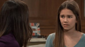 Ned (Wally Kurth) couldn’t believe Nelle Benson (Chloe Lanier) is in their house eating their breakfast. Tracy (Jane Elliott) told her son she was going to go get Edward’s Winchester. But Ned reminded grandfather’s Winchester hadn’t be fired in thirty years. Michael (Chad Duell) apologized to someone on the phone about Nelle staying at the Quartermaines. Jason (Steve Burton) told Carly (Laura Wright) that Michael was handling the Nelle situation, reminding they had more important things to worry about. Meanwhile, Sonny (Maurice Benard) had his guy beating the shooter they caught while demanding the man give up the name of who hired him. Anna (Finola Hughes) was tied to the banister in her house while Peter (Wes Ramsey) taunted her that her actions were due to betraying him. Suddenly, Violet appeared dressed in a superhero costume with a toy ray gun. The little girl told Peter he made a great bad guy. After Violet the room, Peter thanked Anna for not revealing to the police his work connection to Brice even though he’s sure it’d be uncover. He urged Anna not to protect him and put herself in the crossfire if Jason comes gunning for him. Tearfully, Anna said she gave him up once and wasn’t about to do it again. Jax (Ingo Radmachner) reminded Carly how both Michael and Morgan paid the price for being Sonny’s sons as they were the victims of the violence against Corinthos. Jax refused to let Josslyn (Eden McCoy) as his daughter suffer the same. Finn (Michael Easton) ran into Sam (Kelly Monaco) and Scout at Kelly’s. After putting headphones on her daughter’s ears so she couldn’t hear their conversation, Sam and Finn talked about putting their children in danger by being in love with people like Anna and Jason who had enemies. Michael came to the Quartermaine mansion and told Ned and Tracy that Monica (Leslie Charleson) gave her permission for Nelle to stay there. Michael told Nelle she would be staying in the boathouse. When they left the room, Tracy told Ned with pride how much he sounded like his grandfather when he vowed to gain control of ELQ to Quartermaine hands (by ousting Michael as CEO). She was leaving Port Charles and returning to Amsterdam. When Sonny came home, he wasn’t happy to see Jax still in his house. Jax suggested that Sonny could protect his family by turning himself in, giving up his business contacts and going into witness protection. Sonny said that wasn’t going to happen. Thinking about Sam’s words about putting their children in danger, Finn wasn’t happy to find Peter alone with Violet. Jason ended up exchanging gunfire with the shooter. As the man was dying, Jason demanded to know who he was working for. The gunman said Cyrus.