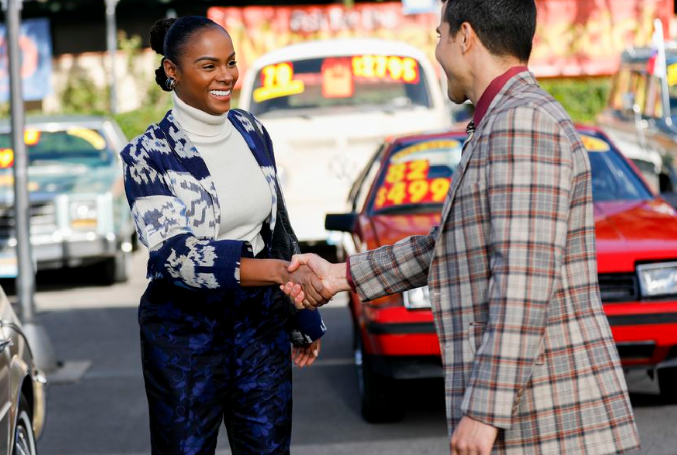 Season 1 Episode 16 is titled “She Works Hard For The Money” Here is the synopsis: “Alicia gets a bonus after winning a big case and wants to buy a nice car, but having been raised on the “fifty-cent principal,” Denise wants her to buy two cars in lesser condition so she can have one. Meanwhile, Paul tries to teach Rainbow, Johan and Santamonica about the value of money.”