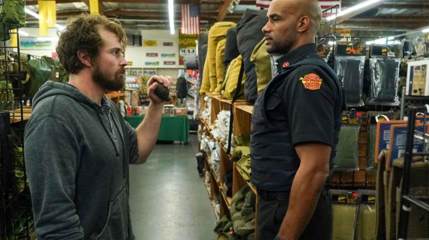 Season 3 Episode 9 is titled “Poor Wandering One” Here is the synopsis from TV Guide: “When an Army veteran threatens to blow up a pawn shop, Sullivan reflects on his time as a Marine to deescalate the situation. Meanwhile, Vic and Dean try to reason with a man battling Alzheimer’s disease; and Pruitt takes a stand to honor fallen firefighters.”