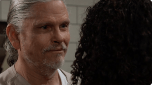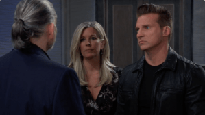 Sam (Kelly Monaco) and Jason (Steve Burton) met at one of Sonny’s (Maurice Bernard) safe houses. At The Metro Court, Nina (Cynthia Watros) told Jax (Ingo Radmachner) she’s worried about how Charlotte (Scarlett Fernandez) may be acting out because they (she and Jax) are dating. Cameron (William Lipton) told Josslyn (Eden McCoy) he was worried Trina (Sydney Mikayla) was hurting and he couldn’t help her. Trina stormed into Curtis (Donnell Turner) and Jordan’s (Briana Henry) and demanded the police commissioner recant her statement evidence was fabricated to get Cyrus Renault (Jeff Kober) convicted. Sonny (Maurice Benard) told Carly (Laura Wright) about Renault’s release, TJ’s kidnapping and the plan with Jason, Curtis and Jordan. At Pentonville, Jordan told Cyrus since he got what he wanted if he didn’t let TJ go he wanted enjoy his new freedom. Nikolas (Marcus Coloma) and Ava (Maura West) overheard Robert (Tristan Rogers) telling Kevin (Jon Lindstrom) and Laura (Genie Francis) about Cyrus Renault’s release. Kevin told Nikolas he wouldn’t insist Laura back down from the Renault situation because he respected his wife and her choices. Cameron didn’t think it was fair that Cyrus Renault would go free while Trina’s dad would be known as a bad cop. Curtis told Trina that she could honor her dad by living her best life. But Trina accused Jordan of lying a vowed to prove it. Jason told Sam them being together would make she and the kids a target. He reminded that he would have to be removed first in order for Cyrus to get to Sonny. And Jason didn’t want Sam or the kids hurt. Sam told Jason it wasn’t just his decision. Sonny told Carly if Cyrus backed down he’d appear weak. Corinthos vowed if need be he’s move the entire family. Trina came to the Corinthos house and told Josslyn she didn’t want sympathy, she needed help. Sam told Jason she was away from him for five years and couldn’t do it again. But Jason told Sam that they had to give their kids a chance at a safe. Tearfully, Sam finally and reluctantly agreed she and Jason couldn’t see each other or have contact. Jordan told Curtis that if Cyrus Renault didn’t release TJ, she’d kill him and then turn herself in. Trina wanted Josslyn to help her hire Diane Miller (Carolyn Hennessey) to sue Jordan for deformation. Josslyn confronted Trina who cried she missed her dad. Carly interrupted Jax and Nina at The Metro Court She told him the situation but instead of saying he would take Josslyn to live with him, he said he was confident Sonny could protect them. Ava told Nina she was second best with Jax as Carly was the woman he got away. Laura and Robert arrived at Pentonville. After Scorpio and the woman left the room, Laura urged Cyrus to return to Seattle but he told her he had no intention of doing so as he’d lose the respect of his business associates. Sonny ordered Jason to kill Cyrus tonight. After signing the release papers, Cyrus shook the warden’s hand and then extended his hand to Robert, who refused to shake it. Looking at Laura one last time, Renault left Pentonville a free man.
