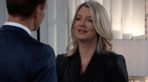 After looking at a text from Charlotte (Scarlett Fernandez) in which the little girl wrote she missed her, Nina (Cynthia Watros) pulled out her half of the heart necklace. Willow entered and upon noticing the necklace, asked Ms. Reeves about it. Nina told Willow the history of the necklace and how she believed her daughter had the other half. Diane (Carolyn Hennessey) came to the Corinthos house and told Sasha (Sofia Mattsson), Sonny (Maurice Benard) and Michael (Chad Duell) that Martin Grey (Michael E. Knight) filed a change of attorney and will be representing Nelle (Chloe Lanier) from now on. Additionally, Nelle’s filed a medical malpractice and gross competence naming Bobbie (Jackie Zeman) and Monica (Leslie Charleson). Sonny realized that’s a tactic Nelle is using to get Michael to agree to shared custody. At The Metro Court, Carly (Laura Wright) finally met Cyrus Renault (Jeff Kober) and told him he couldn’t stay. Renault realized she was the owner Sonny’s wife Carly. Jason approached and asked Carly whether everything was okay. Carly got a text from Sonny and had to leave. Left alone, Jason warned Cyrus what happened at his warehouse could happen anywhere and reminded he wasn’t welcomed at The Metro Court. Curtis (Donnell Turner) and Jordan (Briana Henry) rushed into GH where they were taken to TJ’s (Taj Bellow) hospital room. When he regained consciousness, TJ explained he doesn’t know much about the people who kidnapped him. Also at GH was Sam (Kelly Monaco) who was picking up a vaccination form form for Scout. Chase (Josh Swickward) told Sam that TJ was dropped off after being badly beaten. Sam said she’d tell her sister Molly (Haley Pullos). Willow was surprised when Nelle entered Nina’s office with a cup of coffee for her boss and Nina announced she’d hire Nelle as her assistance. Sam came to Molly’s apartment and told her sister about TJ being in the emergency room. Because she was double parked, Sam went to wait while her sister got dressed. After Sam left, Brando (Johnny Wactor) exited Molly’s bedroom…it was obvious they’d spent the night together. Molly told Brando about her boyfriend being brought to the hospital beaten. She wanted Brando to forget what happened between them. Sonny told Diane to do whatever she could to make sure Nelle didn’t get her hands on Wiley. When Carly learned about Nelle’s law suit against Bobbie and Monica she said “This started with me and I’m going to be the one to finish it.” Then left to confront Nelle. At GH, Sam told Jordan that Jason told her the truth about what really happened with TJ. Brando returned back to his garage and thought about when he met Molly and how their meeting ended in a kiss. Molly told TJ how when he wouldn’t return her calls or answer her texts she thought he never wanted to see her again. She apologized for jumping to the worst possible conclusion. “Nothing’s happened we can’t take back,” TJ told Molly. He suggested they should consider a domestic partnership. Sonny came to the garage and told Brando the threat to his (Sonny) family was at a high level and he warned Brando to watch his back. TJ told Molly he think they should consider a domestic partnership. Jordan worried what Chase would uncover when he said he would be handling the investigation into TJ’s abduction. Molly agreed that they could be domestic partners. Jason told Sonny about the altercation with Renault at The Metro Court. Nelle reminded Willow that she wasn’t Wiley’s mom. “You mean absolutely nothing to him,” Nelle said.