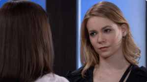 At the Corinthos house, Sonny (Maurice Benard) told Dev (Ashton Arhab), Josslyn (Eden McCoy) and Brando (Johnny Wactor) that he took care of the restrictions keeping the teens in the house. Elizabeth (Rebecca Herbst) asked Cameron (William Lipton) how his therapy was going with Dr. Byrne. She commented that he looked like he had something on his mind as he looked at an entering Trina (Sydney Mikayla). Portia (Brook Kerr) asked Elizabeth’s opinion about Dr. Robinson putting her name in for a position as Head of Internal Medicine. And later, Portia told Liz she put her name in the ring for consideration. Brooklyn (Amanda Setton) told Julian (William deVry) as much as he pretended she knew he tried to have Brad (Parry Shen) killed. Chase (Josh Swickward) was tempted to tell Willow (Katelyn MacMullen) the truth about the ruse of cheating on her. But ended up keeping quiet while she got her stuff and left. At GH, Trina noticed Cameron was acting awkwardly and knew it was because they kissed. She suggested they talk about it, commenting that she thinks Cameron was suffering from PTSD because of the kidnapping and that was may have been part of the reason they kissed. Trina said they will only ever be friends because he’s into Josslyn. Trina and Cameron hugged. Just then, Dev and Josslyn walked in and told them their house arrest was over. The teens decided to go to a movie that night. Nelle (Chloe Lanier) taunted Michael (Chad Duell) that all the time he worried about her it was his own girlfriend who did him dirty. “So tell me Sasha in your own words why you cheated on my son?” Carly (Laura Wright) angrily demanded. But after listening to Sasha (Sofia Mattsson) explain, Carly realized Ms. Gilmore was lying and was sacrificing her own happiness for Wiley and Michael. After the teens left, Brando told Sonny how he liked to stay and start a new life in Port Charles. Nelle agreed to stop her lawsuit against GH, Bobbie and Monica if Michael agrees to give her full custody. Of course, she’d give him visitation rights. Michael refused her offer telling Nelle his grandmothers would gladly give up their careers if it meant keeping Wiley from her. After Nelle left, Michael picked up a tree branch and took out his frustration on standing tree. Willow approached and Michael told her about his latest altercation with Nelle. Meanwhile at The Metro Court, Nelle told Carly about the “mistreatment” she’d gotten from Michael. Nelle also tried to bait Carly by saying Michael would lose custody of Wiley. But Carly countered by saying she had a good feeling Michael would win custody. Sasha came to Chase’s apartment. They tried to convince themselves that it was for the greater good to lose the people they loved. Michael convinced Willow to also relieve her Nelle frustrations by hitting the tree branch and assured that they’d stop Nelle from ever getting her hands on Wiley.