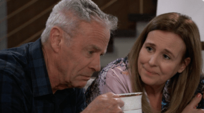Chase (Josh Swickward) dreamed Willow (Katelyn MacMullen) joined him in the shower. She said she couldn’t stay away. But both he and Willow woke up to empty beds. Brook Lynn (Amanda Setton) told Michael (Chad Duell) that Willow was the perfect wife for him. Ava (Maura West) brought Avery (Ava and Grace Scarola) to visit Mike (Max Gail) and she drew him a picture. At The Metro Court, Carly (Laura Wright) asked Olivia’s (Lisa LoCicero) on being a mother-in-law. Seeing Lulu (Emme Rylan) and Dustin (Mark Lawson) entering, Olivia told Carly you must have patience, hold your tongue and put on a fake smile. Mac called Chase angrily reminding his detective he should be in the squad room. Laura (Genie Francis) teased Robert (Tristan Rogers) that something happened between them when he woke up on her sofa. But in reality he showed up at her door last night drunk. Olivia accused Lulu of trying to replace Dante with Dustin in Rocco’s life when her daughter-in-law asked for Olivia’s cupcake recipe for Bring Your Dad To Work Day. Carly pulled Dustin aside and asked him to consider Olivia’s feelings. Robert told Laura about Holly’s (Emma Samms) death. Ava asked Sonny how Mike was doing, showing a real moment of sympathy for Sonny. Michael told Willow marrying her gave him confidence he’d win custody of Wiley. Taking Carly’s advice, Dustin gave Olivia words of understanding. Meanwhile, Laura also encouraged Lulu to be more sympathetic to Olivia. At the PCPD, Mac told Chase he needed to make amends with Brook Lynn Quartermaine or he could be accused of abusing power as an officer of the law. Sonny asked Michael’s opinion on whether he should allow Mike to be fed with a feeding tube. Michael reminded Sonny he knew his father better than anyone. Mac showed Robert the redacting report of the boating accident that caused Holly’s death and told his brother he believed there was more to the accident. Willow came to the PCPD to tell Chase in person she married Michael. She said she knew it would hurt him and wanted him to hear it from her. Carly entered as Willow was leaving.