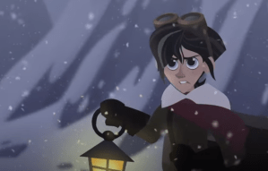 Varian races off during the big blizzard in Corona to get Rapunzel’s help to free Quirin from the amber. He’s determined to save his dad and make his father proud because he “longs for that look of surprise when you see your son rising at the last. The pride in your eyes when you see your son rising at last.” Poor kid.