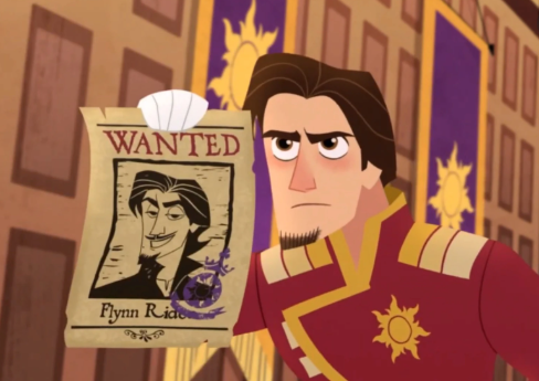 Eugene is annoyed when a description is given of the criminal and he’s shown the wanted poster: It’s Flynn Rider with a mustache!