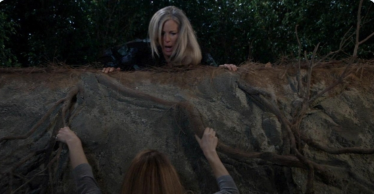 However, Nelle chose to run off and ended up hanging over a cliff. She pleaded with Carly to help her. Briefly hestitating, Carly reach for Nelle’s hand to pull her up. But she slipped from Carly’s grasp and plummeted to her (presumed) death.