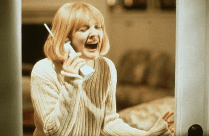 Scream is a 1996 American slasher film[directed by Wes Craven and written by Kevin Williamson. The film stars David Arquette, Neve Campbell, Courteney Cox, Matthew Lillard, Rose McGowan, Skeet Ulrich, and Drew Barrymore. Released on December 20, it follows the character of Sidney Prescott (Campbell), a high school student in the fictional town of Woodsboro, California, who becomes the target of a mysterious killer in a Halloween costume known as Ghostface. The film combines black comedy and “whodunit” mystery with the violence of the slasher genre to satirize the clichés of the horror movie genre popularized in films such as Halloween (1978), Friday the 13th (1980) and Craven’s own A Nightmare on Elm Street (1984). Scream was considered unique at the time of its release for featuring characters who were aware of real-world horror films and openly discussed the clichés that the film attempted to subvert. (Wikipedia).
