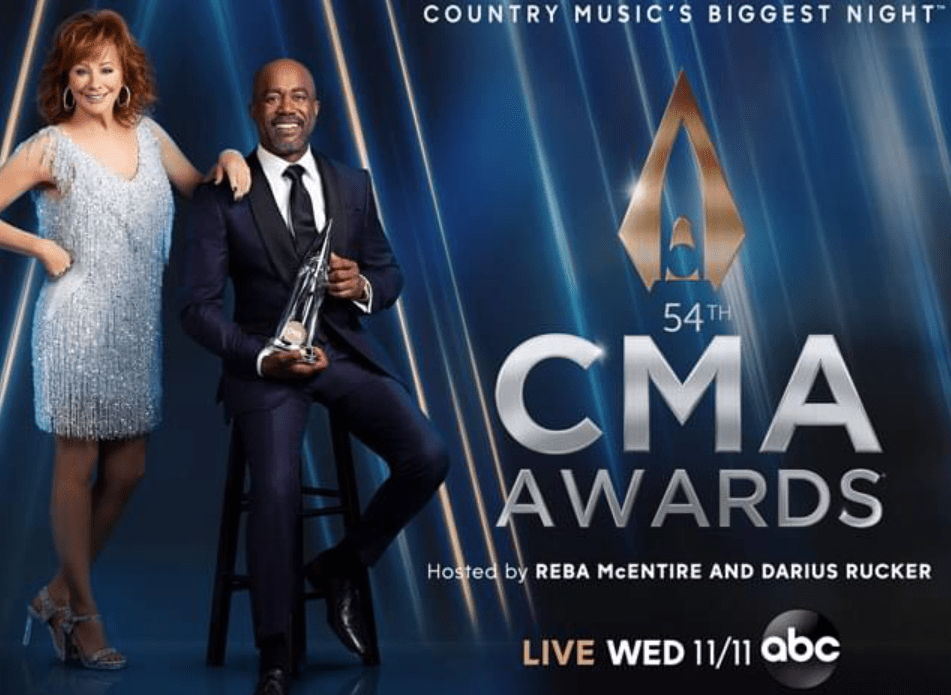 The 54th Annual CMA Awards hosted by Reba McEntire and Darius Rucker airs November 11, 2020.