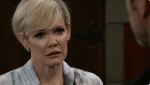 Trina (Sydney Mikayla) told Josslyn (Eden McCoy) that Cyrus Renault (Jeff Kober) told her that her father was still alive and in hiding. Chase (Josh Swickward) visited Sasha (Sofia Mattson) in her GH room and told her that her toxicology result revealed the drugs she took were laced with amphetamines. Britt (Kelly Thiebaud) reminded Lucas that Brad did what he did because he loved him. But Lucas was too self righteous to see it. Carly (Laura Wright) told Jason (Steve Burton) and Sonny (Maurice Benard) how Taggert (Réal Andrews) was getting restless staying hidden. She was shocked when Sonny told her Julian (William deVry) was the one who planted the bomb at The Floating Rib to kill Jason because Julian knew for months Wiley was Michael’s son and Cyrus was holding this over his head. Carly had her own bombshell to reveal to her best friend and her husband: Nelle (Chloe Lanier) was Nina’s (Cynthia Watros) daughter. Carly admitted she told Jax (Ingo Radmacher). Sonny wondered whether Jax would tell Nina. Sasha asked Chase why he told Willow (Katelyn MacMuellen) the truth now. He said he needed her to know he still loved her. But it was too late because Willow and Michael now have a real marriage. Trina told Josslyn she believed Renault when he said her dad was alive. But they pinky swore not to tell Sonny. Michael told Willow how awkward he felt going to see Sasha now that he knew the truth about her and Chase’s supposed affair. Ava (Maura West) told Nikolas (Marcus Coloma) the whole sordid story of how Julian planted the bomb at The Floating Rib because he was afraid of Sonny. She added that she chose him over her brother. Jax urged Nina to give up the search for her daughter. Michael came to see Sasha. Meanwhile, Chase arrived at the Quartermaine mansion to speak with Willow.