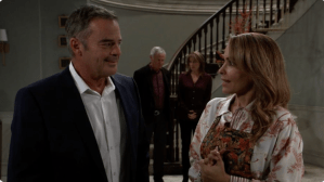 Curtis (Donnell Turner) and Jordan (Briana Henry) were flying from Oregon to Mexico City to investigate the medical equipment purchased for the mystery patient staying at the cabin. At GH, Maxie (Kristen Storms) told Brando (Johnny Wactor) she was sorry about Dev (Ashton Arbab). Cyrus (Jeff Kober) asked Portia (Brook Kerr) about Lulu’s (Emme Rylan) condition. He also told Maxie about Sasha’s (Katelyn MacMuellen) heart attack. Brando confirmed it was due to drug use. Dr. Robinson reminded Renault the family wouldn’t appreciate his concern. Sonny (Maurice Benard) told Jason (Steve Burton) they would kill Julian (William deVry) after they got the information about Renault they needed. They left for Wyndemere. Meanwhile, Ava (Maura West) held her gun on Julian and told him she had to kill him. Julian accused Ava of choosing Nikolas (Marcus Coloma) over him. Ava said she would make it quick unlike Cyrus or Sonny. Plus this way, Ava was keeping herself, his children and grandchildren safe. Valentin (James Patrick Stuart) brought Charlotte (Scarlett Fernandez) to GH. Charlotte was worried her mother would know how scared she was. Nina (Cynthia Watros) arrived to help her ex-stepdaughter. Valentin fired Martin (Michael E. Knight) as his lawyer. Laura slapped Cyrus when he expressed his concern for Lulu and offer to help. She vowed she’d come after him once the bomb that blew up The Floating Rib was linked to him. Ava ordered Julian to go out on the turret. He asked her to tell his children he loved them and to think about the choices they made. When Jason and Sonny arrived, Julian jumped over the side of the turret. While Jason searched for Jerome, Ava told Sonny how once she learned what her brother had done she planned to kill him before he or Cyrus could. Curtis and Jordan posed as a businessman and his assistant and while he took a tour of the facility, Jordan copied the computer files. Later, Jordan told Curtis the patient’s last name was Grey. Meanwhile, Martin had an exchange with Cyrus. It was obvious they had history. Everyone said their goodbyes to Lulu before she was taken to the long care facility. Sonny told Jason if Julian hadn’t died in the fall, he’d wish he did. Julian laid conscious rocks below.