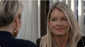 Josslyn (Eden McCoy) comforted her mother when she found Carly (Laura Wright) crying over Sonny (Maurice Benard). Phyllis (Juliette Jeffers) found “Mike” cleaning off the tables in the bar. She reminded he needed rest because he was recovering from a head injury. Jax (Ingo Radmacher) and Nina (Cynthia Watros) found Curtis (Donnell Turner) eating alone at Kelly’s. Nina asked about Jordan (Briana Henry). She and Jax joined Curtis at their table. Nina told Curtis about Phyllis Caulfield telling her about her daughter. Nina told Curtis she decided to drop the search for her daughter in order not to disrupt her life. She’ll wait if her daughter wants to find her. Olivia (Lisa LoCiero) wanted Alexis (Nancy Grahan) to say the words for what she did…which was doing more than sleeping with Ned (Wally Kurth). Tracy (Jane Elliott) said Ned was lucky he couldn’t be charged with the stupidity of cheating on his wife. Ned accused his mother of interfering in his marriage because Luke (Tony Geary) was off somewhere. Scott (Kin Shriner) asked what he’d done when Franco (Roger Howath) said he needed representation. Franco assured Scott he didn’t break the law; he just needed his dad to make sure his wishes are legally carried out. At Volonino’s, Elizabeth (Rebecca Herbst) confronts Jason (Steve Burton) about agreeing to kill her husband. She angrily asked what line Franco had to cross for Jason to kill him. “If Franco becomes a threat, I’ll know. The question is Elizabeth will you?” Jason asked. Sonny offered Lenny drink suggestions for his customers. Josslyn reminded Carly how she comforted her after Oscar died. She also commented how empty the house felt without Avery (Ava and Grace Scarola). Josslyn told her mom that Ava was there earlier and she gave her Avery’s necklace. Franco told Scott about asking Jason to kill him if the tumor made his old behavior return. Scott promised to do what was in his son’s best interest if Franco died. Elizabeth warned Jason he’d have to answer to her if anything happened to Franco. Carly called Jax and asked him to come over. When he arrived, Carly told him Ava had the necklace and she had to get it back. Tracy told Alexis even if she didn’t believe her part of what she did was to convince Alexis to get treatment for her drinking. Ned apologized again for cheating on her and told Olivia he’d be waiting if or when she decided to forgive him. Elizabeth returned home and told Franco that if Jason came after him he’d have to go through her first.