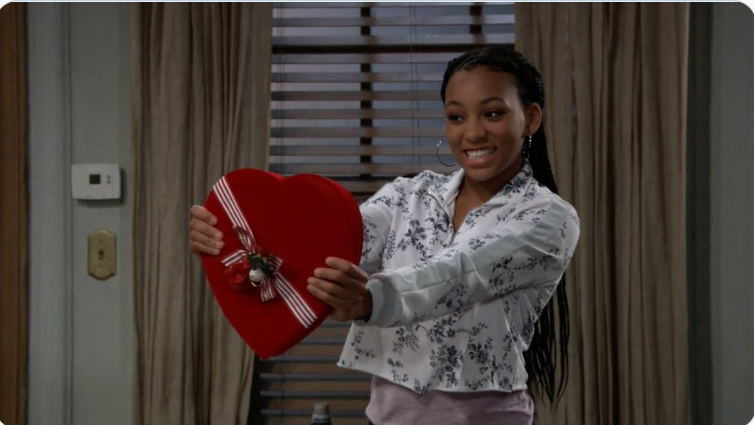 Cameron (William Lipton) was practicing his new song when someone knocked on the door. Thinking it was a person after his stepfather, he held his guitar like a club. A couple at a restaurant left when they saw Franco (Roger Howath) and Elizabeth (Rebecca Herbst) enter, worried the former serial killer would snap. Kristina (Lexi Ainsworth) gave Molly (Haley Pullos) flowers to use for her commitment ceremony with TJ (Taj Bellows). Britt (Kelly Thiebaud) gave TJ the night off so he could spend it with Molly. Then Britt went to spend Valentine’s Day with Brad (Parry Shen) who she arranged to be released from Pentonville by saying he needed follow-up medical treatment. They stuffed Valentine’s Day gift bags for the hospitalized children. Brad commented when he noticed Britt’s hand shaking. Chase (Josh Swickward), Willow (Katelyn MacMullen), Michael (Chad Duell) and Sasha (Sofia Mattsson) realized they all made reservations at The Grill for Valentine’s Day. Michael suggested he and Sasha take it slow and see where the night led them. When he noticed his hair starting to fall out, Elizabeth assured Franco he’s going to live for a long time. Ava (Maura West) and Nikolas (Marcus Coloma) were at The Grill and talked about how they liked where they ended up. Jordan (Briana Henry) questioned Brando (Johnny Wactor) about who shot him in the leg. When Jason (Steve Burton) entered Corbin’s hospital room, Jordan asked whether he had anything to add. But Jason stayed in character and didn’t give information. Curtis and Portia were at the club watching Ashford’s client’s cheating spouse. The husband of his patient thanked TJ for the care he and Britt showed his wife. He told TJ today was his 48th anniversary. Meanwhile, Molly was explaining to Kristina she chose Valentine’s Day for her and TJ’s recommitment ceremony because she wanted the commercial holiday to take on more meaning. But TJ is late and Molly is given twenty minutes for him to arrive before the place closes. While she goes to check to see whether he’s parking his car, Kristina offers the woman money to keep the place open. When TJ couldn’t get a rideshare, Jordan offered to give her a son a lift. The person at the Webber Baldwin door turned out to be Trina (Sydney Mikayla) and Josslyn (Eden McCoy) who came to celebrate Valentine’s Day with Cameron. Josslyn found the acceptance letter from Stanford but Cameron told her he wasn’t sure if he would attend. Instead of the gift Nikolas planned, Ava found a roach in a glass display. Even after Curtis had the photo of the cheating spouse for his client, Portia wanted to stay at the club a little longer. Willow spent her dinner with Chase talking about Michael. When he and Elizabeth returned home, Franco showed Cameron he was losing his hair. Brad overheard Felix (Marc Samuels) and Lucas talking about having a drink together after work. Britt invited Jason to help her distribute the Valentine’s Day gift bags to the children.