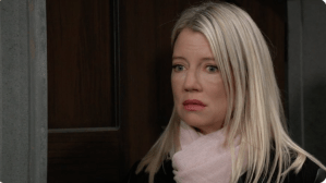 Josslyn (Eden McCoy) asked Michael (Chad Duell) how he was doing since Sonny (Maurice Benard) was his father. At Tano’s, Lenny asked Mike/Sonny whether he remembered anything about who he was. Lenny apologized for the state trooper Officer Finchley giving him a hard time. Nina (Cynthia Watros) overheard Carly (Laura Wright) saying how when she saw Nelle (Chloe Lanier) hanging over the cliff she hesitated for a moment before reaching out to help but it was too late. Carly added how Jax (Ingo Radmacher) encouraged her not to tell the police she was there. Nina went to the cemetery and talked with Nelle telling her daughter they could have spent time together as mother and daughter if not for Carly. Nina cried how Nelle came to her for help but she believed Carly and turned her back on her. Laura (Genie Francis) agreed to have coffee with Cyrus (Jeff Kober) so he wouldn’t go to the church with Brando (Johnny Wactor) for Sonny’s service. Alexis (Nancy Grahan) gave Molly (Haley Puollos) the small bottle of alcohol her daughters missed when they were getting rid of the booze in the house. Molly decided to stay with Alexis while Sam (Kelly Monaco) and Kristina (Lexi Ainsworth) go to the service. Molly convinced her mother not to change her plea to guilty as it would be a loss to the community. Cyrus asked Laura to think about how different her life would have been if her mother Leslie had thrown her out of the house at seventeen like Florence did him. Laura reminded Cyrus how she chose to make amends for her mistakes while he uses his power over those he considers weaker than him. Kristina, Michael and Carly spoke at Sonny’s service. And later at the gravesite, Nina demanded to speak with Jax. She said she knew what he’d done and everyone else would know too. A side effect of the Bipolar medication caused Mike/Sonny to become drowsy. While asleep, he saw a blonde woman (Carly) but not her face. When he woke up, Mike/Sonny told Lenny about his dream and said he didn’t want to wake up from it.