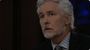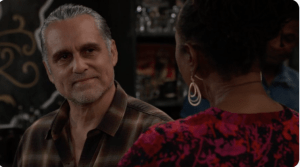 Curtis (Donnell Turner) told Portia (Brooke Kerr) he and Jordan (Briana Henry) are separated. Cyrus (Jeff Kober) told Brando (Johnny Wactor) he wasn’t as useful as Renault thought when he hired him. Cyrus was annoyed because Brando hasn’t found his mother yet and warned he’d terminate Corbin if Brando didn’t prove his worth. Britt (Kelly Thiebaud) went to show Jason (Steve Burton) the research she did herself on Cyrus’ pain drug but found all her files were deleted. Lenny blamed Mike/Sonny (Maurice Benard) for Tano getting robbed because he wasn’t watching the place like he was supposed to. Nina came to Jordan’s office and told the police commissioner she had new information about the death of Nelle Benson. She told Jordan about Jax (Ingo Radmacher) and Carly (Laura Wright) lying about how Nelle died. And also revealed Nelle was her daughter. Carly told Josslyn (Eden McCoy) the truth about what happened on the cliff. Josslyn said her mother made the right call, remembering how her mother was sent to Ferncliff because of Nelle’s lies. Jackie (Kim Delaney) told Martin (Michael E. Knight) and Valentin (James Patrick Stuart) she may have tracked Grey’s mother to Vermont where Bobbie Spencer (Jackie Zeman) was acting as a nurse for a private patient. Jackie thought she should go check it out alone. Officer Bentley accused Mike/Sonny of being responsible for the robberies. He admitted he lifted Mike/Sonny’s prints from a coffee mug but could get a clear print to identify who he was. After Officer Bentley left to check Mike’s room, Phyllis (Juliette Jeffers) suggested Mike/Sonny leave because of the cop. Mike/Sonny warned Lenny and Phyllis someone may be targeting them. “As long as there’s trouble here, I stay” Mike/Sonny told Lenny and Phyllis. Curtis asked Portia to be his Valentine when he went to the club as part of a stakeout for a client. Jordan questioned Jax and Carly about Nina’s allegations and told her since Nelle’s fall from the cliff happened in PA and past state lines, she’d have to notify the Feds. Cyrus interrupted Jackie and Martin and assured his man would find their mother. When Brando told Jason how Cyrus planned to terminate him (either firing or killing him) if he didn’t find Renault’s mother, Morgan commented that was a problem then took out his gun and fired. Saying she was referred by Dr. Westbourne, Britt scheduled an appointment for her hand tremors. Martin told Jackie he had to find their mother before Cyrus did. Nina told Valentin about Jax and Carly’s lies then asked his help to make them pay.