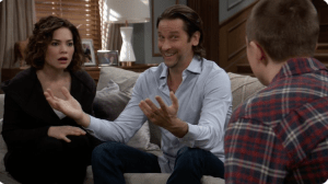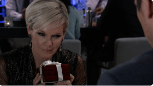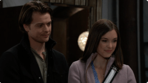 Jason (Steve Burton) agreed to help Britt (Kelly Thiebauld) distribute the Valentine’s Day gift bags. Ava (Maura West) assured Nikolas (Marcus Coloma) she wouldn’t let a roach ruin their life. Ava was given another gift which she hoped was from her husband. Willow (Katelyn MacMullen) told Chase (Josh Swickward) she wanted to pretend the last few moments never happened. Molly (Haley Pullos) was relieved when TJ (Taj Bellow) showed up for their commitment ceremony. Josslyn (Eden McCoy) suggested Cameron (William Lipton) sing his new song for Franco (Roger Howath). But the teen said he didn’t feel like it and walked out the room. TJ told Molly he brought a guest. Molly was happy to see Jordan (Briana Henry). After presenting their driver’s licenses and signing the paperwork, TJ and Molly were recognized by the State of New York as domestic partners. Jordan took photos on her cell phone and told her son she was so proud of him and Molly carving their own path. Cameron told Trina (Sydney Mikayla) and Josslyn he needed their help. He said he had to step up as big brother so Aiden (Jason David) and Jake (Hudson West) wouldn’t be afraid of Franco’s hair loss. Then, Cameron asked Josslyn to shave his head. When he gave a little girl a Valentine’s Day gift bag, she thanked Mr. and Mrs. Cupid (Jason and Britt). Ava and Nikolas reasoned Ryan (Jon Lindstrom) gave Ava the roach. But when he called Jordan, the police commissioner told Nikolas that Ryan’s condition hadn’t improved. Michael (Chad Duell) told Sasha (Sofia Mattsson) he’d like for them to start over to see if he could trust her again. Before Cameron came downstairs, Trina and Josslyn told Franco and Elizabeth (Rebecca Herbst) not to freak out. When he removed his beanie, his mother and stepfather saw he shaved his head. Cameron told Franco he did it because he wanted him to know he was with him every step of the way. The two then tried on various hats and Franco commented it was the best Val-Anniversary a guy could have asked for.