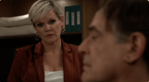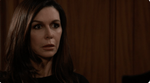 Diane (Carolyn Hennessey) instructed Carly (Laura Wright) on how to answer questions in her new statement. Maxie (Kristen Storms) came to Crimson to see how Nina (Cynthia Watros) was doing. Nina said she was furious. She knew Carly was lying though she admitted confronting her at the service wasn’t the most appropriate place. Jax (Ingo Radmacher) told Alexis (Nancy Grahan) how Nina overheard and misunderstood his conversation with Carly and now he has to give a statement to the FBI. Alexis reminded Jax how client attorney privilege no longer applied. Using the code name Sparrow, Britt (Kelly Thiebauld) met with her mother and told Liesl (Kathleen Gati) how Anna’s (Finola Hughes) been asking questions of the WSB on Liesl’s whereabouts. Valentin (James Patrick Stuart) told Anna their suspicions of Peter (Wes Ramsey) were worse than they thought and he’s been lying about the kind of man he was. He explained how Peter set Obretch up and was responsible for the hits on Andre and Franco (Roger Howath) and Drew’s (Billy Miller) plane crash. Liesl decided it was “Time to confront the beast in its lair.” Finn (Michael Easton) and Peter tried on their tuxedos for the double wedding. Finn commented how his love for Anna made him a better man. Peter said he knew how Finn felt. Maxie wanted Nina to remember the woman Nelle (Chloe Lanier) was and how even though she was raised by Frank Benson who stole her kidney, Nelle was responsible for her own actions. Liesl told Britt she would search Maxie and Peter’s while they weren’t there. Willow (Katelyn MacMuellen) suggested to Michael (Chad Duell) allowing Nina to spend some time with Wiley may help bridge the anger between her and his mother. Carly gave her updated statement to the FBI and stuck to her original version. Valentin told Anna they’d have to ask the tough question of how long would they protect Peter at the expense of those they loved. Finn joined Alexis at The Bistro and they talked about the struggle of remaining sober. Maxie met Britt and said with both Lulu and Georgie gone it was good to have sisters again (Nina and Britt). Anna called Peter and asked him to come over. Willow and Michael brought Wiley over to Crimson so Nina could spend time with her grandson.