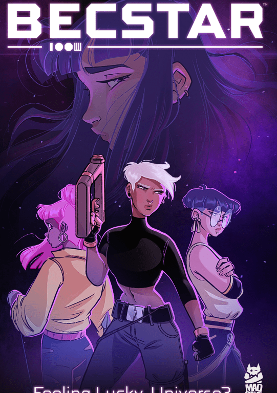 Becstar, our lead character, is a star hopping mercenary who has decided to make a change and become a full time gambler. With her old life behind her she takes her magic dagger and friend Sally Soolin and works to make a living outside of the Shadow Syndicate’s reach. When a mysterious girl appears with grim news and an urgent quest that could alter the fate of the universe. Becstar will have to join, but she’ll immediately regret her decision.