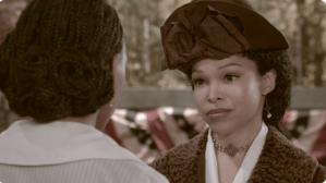 Carly (Laura Wright) and Bobbie (Jackie Zeman) wished Josslyn (Eden McCoy) a happy 18th birthday. Carly reminded her daughter it was her first election day. Trina (Sydney Mikayla) and Portia (Brook Kerr) were at The Jerome Gallery to see an exhibit on voting. When Jordan (Briana Henry) arrived, Trina made a comment about the importance of voting in order to elect public officials like the police commissioner. When Josslyn said she’d vote if she could fit it in her schedule, Carly reminded her daughter voting was important. Carly left to get the polling information for her daughter. Bobbie told Josslyn about her great grandmother Beatrice Eckert, the suffragette. Lucy (Lynn Herring) put out authentic items. There was also a candle with ‘Time’ written on the bottom.  Josslyn arrived at The Jerome Gallery and saw a photo of Beatrice Eckert, who looked just like her mother Carly. When she and Trina went into a polling booth, they found themselves magically transported to Wellington Park in Port Charles on November 2, 1920. Trina and Josslyn met Beatrice Eckert. They were examined by Dr. Priscilla Johnson (also Kerr), who looked like Trina’s mother Portia. Dr. Johnson explained how she was one of the first women to attend medical school at Howard University. Carly and Trina met a woman named Alice (Finola Hughes), who although from England, was in Port Charles to support her American sisters. The women learned from Eliza (Rebecca Herbst) the women voting center was padlocked so they couldn’t vote. They learned the building was foreclosed the night before. Beatrice has an altercation with Ada Cook (Maura West), which resulted in Ada ending up on the ground. Ada had Beatrice arrested. The suffragette ended up locked in a cell and risked missing voting on Election Day. Lexie Brighton (Nancy Grahan) put Trina and Josslyn in contact with Assembly Woman Mary Butler (Leslie Charleson) who used her friendship with the police commissioner to get Beatrice out of jail. And Trina convinced Ada Cook to set aside her differences with Beatrice and not to throw her vote away by allowing her husband to vote for both of them.  Beatrice appeared at the women’s polling place and told the women by voting today they were doing something their aunts, mothers and grandmothers never had the opportunity to do. Once the padlock was broken, they entered the building to cast their votes. Trina and Josslyn wondered whether being there changed history and prevented their return home. Since they were in a voting booth when their “back to the future” incident occurred, the girls decided going inside the voting booth in 1920 would bring them home.  Trina and Josslyn were back at The Jerome Gallery. Lucy told them about the special candle that had the power to make people see things that weren’t there. Carly was proud of her daughter for voting and all she learned about the history of women voters.