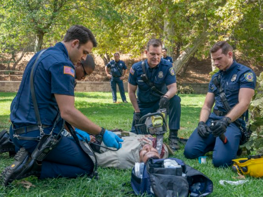 Season 5 Episode 5 is titled “Peer Pressure” Here is the synopsis from TV Guide “The members of the 118 face an awkward rescue call when they arrive on the scene of a man who has over-exerted himself exercising. The team also must save the life of a groundskeeper whose chainsaw cut into him and race to an explosion at a retirement community. Meanwhile, Athena has an extreme reaction to Harry’s new behavior. Then, Hen and Eddie, as well as Buck and Ravi, have rocky starts to their new partnerships, and May receives an emergency call from a suicidal teen, while continuing her uneasy work relationship with Claudette .”